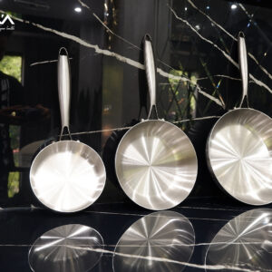 – Phần thân chảo sử dụng inox 403, giúp chảo bắt từ nhanh và đều, tiết kiệm năng lượng khi sử dụng trên bếp từ.
