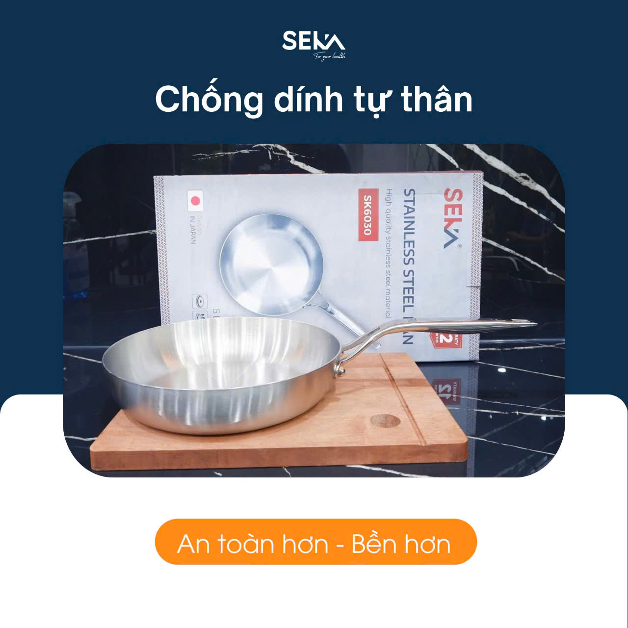 Nếu bạn đang muốn tìm một dụng cụ nấu ăn vừa tiện ích lại vừa hiện đại thì chảo inox SK6030 của Seka chính là lựa chọn không thể bỏ qua. Sở hữu thiết kế tinh tế kết hợp cùng chất liệu inox cao cấp, chiếc chảo này không chỉ giúp bạn chế biến những bữa ăn thơm ngon, bổ dưỡng mà còn góp phần làm sáng bừng không gian bếp với vẻ đẹp sang trọng, hiện đại.