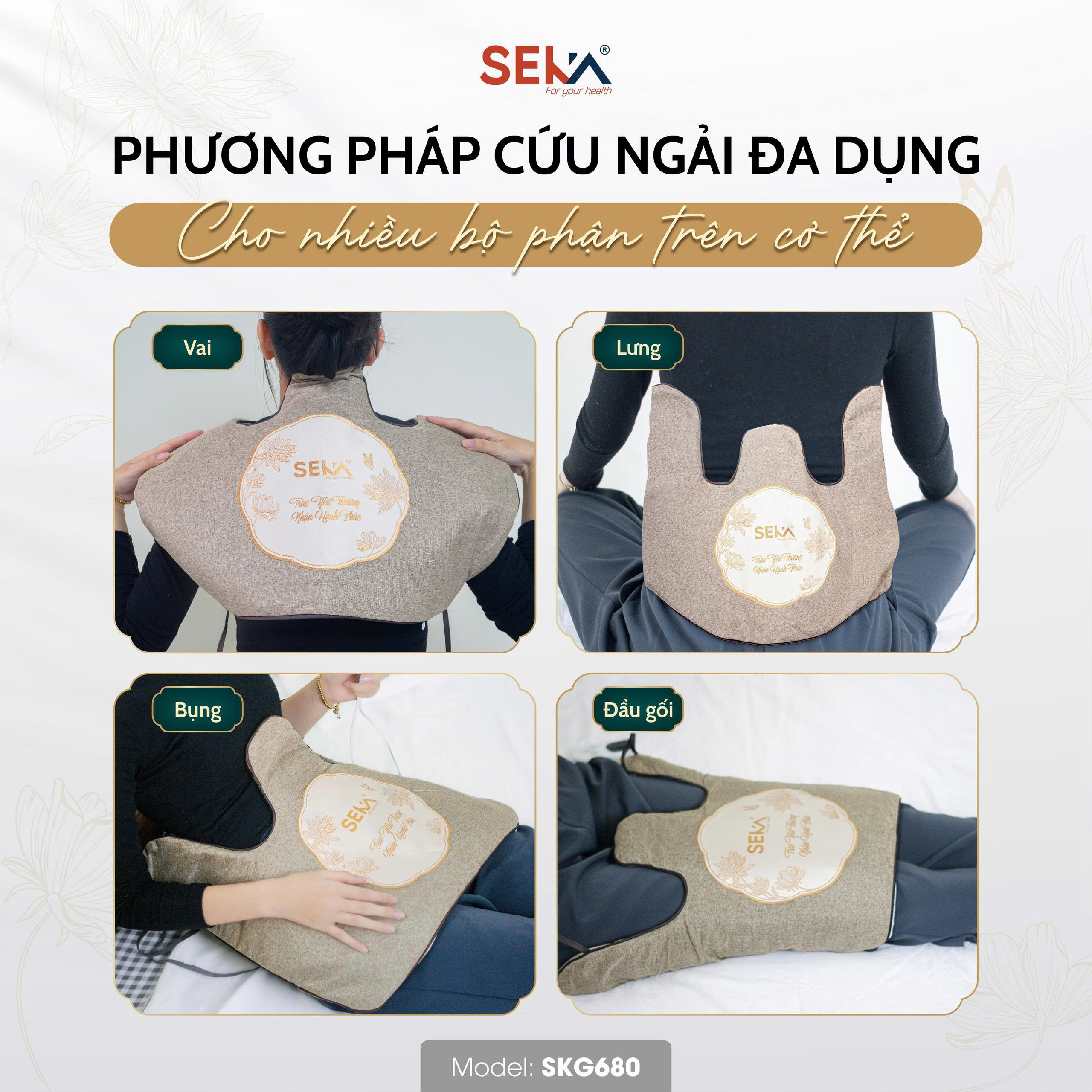 Bạn thường xuyên bị đau mỏi cổ vai gáy, đau lưng, lạnh bụng, nhức đầu gối do ngồi nhiều, làm việc căng thẳng hay thời tiết thay đổi? Đai chườm nóng ngải cứu SKG680 chính là trợ thủ chăm sóc sức khỏe bạn không nên bỏ qua!