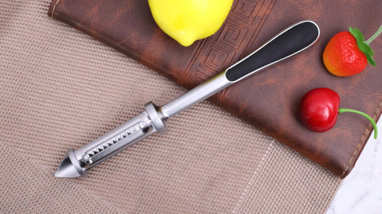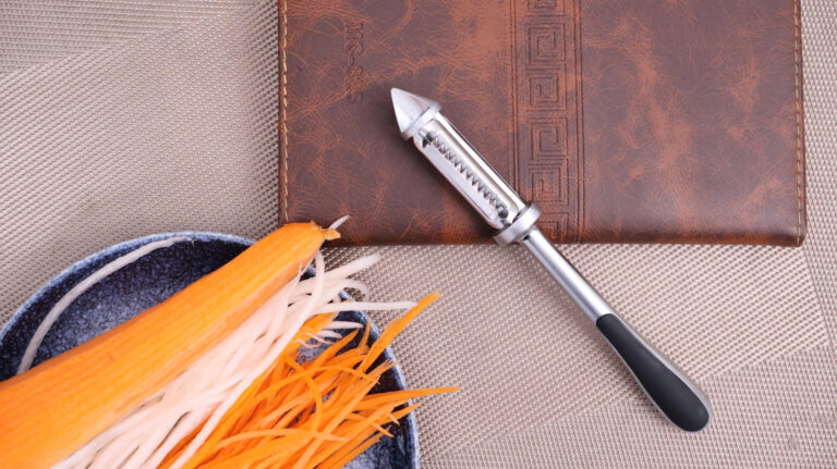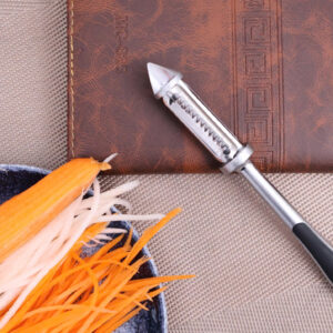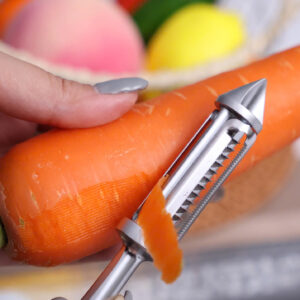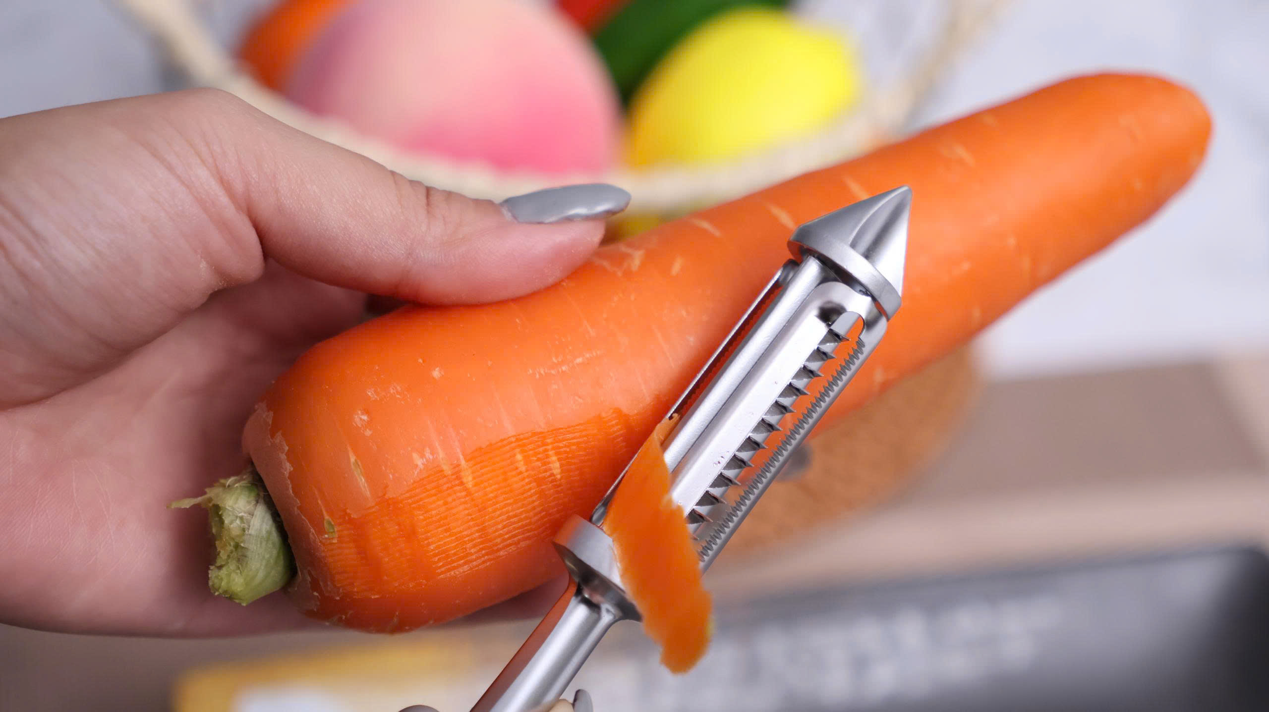 Dao được làm từ thép không gỉ, an toàn và rất sắc bén, dễ dàng nạo vỏ và nạo sợi các loại củ quả như cà rốt, bí xanh, bầu, trái cây…