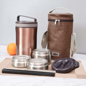 Ngoài hộp giữ nhiệt 1700ml, sản phẩm còn đi kèm 3 hộp đựng thực phẩm riêng biệt (450ml + 2×250ml), giúp bạn chia món linh hoạt. Tặng kèm đũa và túi giữ nhiệt – đầy đủ cho 1 bữa ăn trọn vẹn.