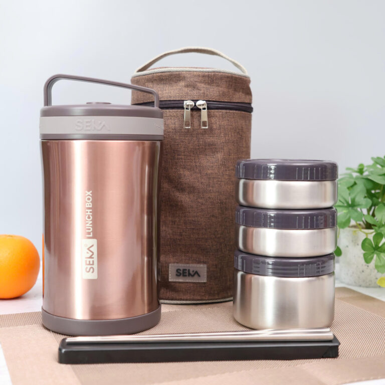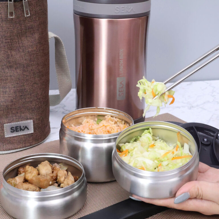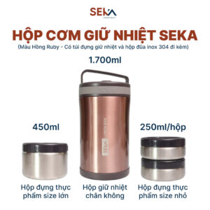 Hộp cơm giữ nhiệt Seka được trang bị công nghệ giữ nhiệt chân không hiện đại, làm từ các chất liệu cao cấp (inox 304, phủ ion bạc Ag+ kháng khuẩn, nhựa PP an toàn, gioăng silicon) giúp giữ nóng thức ăn trong suốt 12h liền. Giải pháp mang cơm văn phòng, du lịch, dã ngoại cực tiện – giữ trọn dinh dưỡng bữa ăn mỗi ngày.