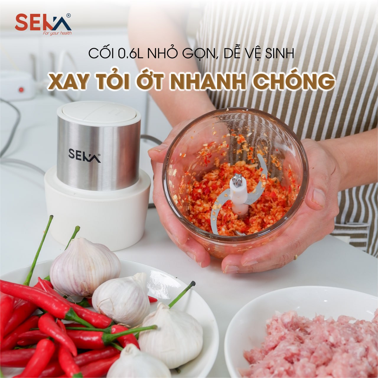 Máy xay đa năng Seka được trang bị 2 cối xay riêng biệt với 2 dung tích khác nhau. Cối lớn dung tích 2 L có thể sử dụng để xay thịt, cá, các loại thực phẩm lớn. Cối nhỏ dung tích 600 ml phù hợp để xay các loại đồ khô hoặc gia vị như xay tiêu, hành tỏi, các loại hạt…