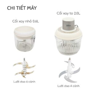 Chọn cối xay phù hợp với lượng nguyên liệu: cối lớn 2L cho thịt, cá, tôm, cua; cối nhỏ 0.6L cho rau củ quả và trái cây. Lưu ý không nên cho quá nhiều nguyên liệu để tránh làm máy quá tải hoặc hỏng hóc.