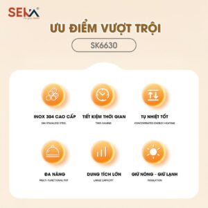 Với thiết kế cả phần thân giữ nhiệt và phần nắp đều là giữ nhiệt chân không, sử dụng chất liệu inox 304 cao cấp, nồi ủ chân không Seka mang đến khả năng giữ nhiệt đỉnh cao, có thể ủ chín thực phẩm và giữ nóng thực phẩm trong suốt 24 giờ rất tiện lợi cho những bữa ăn gia đình, mang đi dã ngoại hay dùng tại văn phòng.