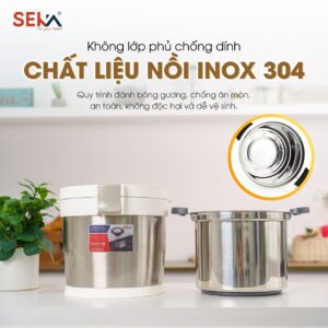 Nồi ủ nhiệt đa năng Seka được làm từ inox 304 cao cấp, một loại vật liệu an toàn, bền bỉ và không chứa các chất độc hại. Loại inox này không chỉ chống gỉ, chịu nhiệt tốt mà còn đảm bảo giữ được hương vị tự nhiên của thức ăn. Điều này giúp bạn hoàn toàn yên tâm về sức khỏe khi sử dụng nồi ủ cho các bữa ăn hằng ngày của gia đình. Bên cạnh đó, chất liệu inox còn có khả năng chống ăn mòn và dễ dàng vệ sinh sau khi sử dụng, giúp nồi luôn bền đẹp theo thời gian. Nhờ chất liệu cao cấp này, nồi ủ Seka vừa đảm bảo an toàn sức khỏe cho người dùng vừa giúp tăng tuổi thọ của sản phẩm.
