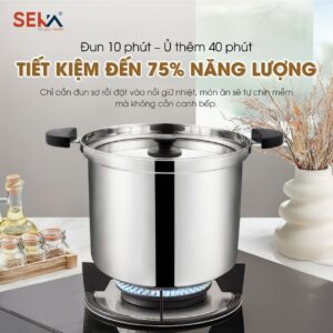 Nồi ủ là dụng cụ nhà bếp thông minh, tiết kiệm điện/gas, hoạt động theo nguyên lý giữ nhiệt chân không để tiếp tục làm chín thức ăn sau khi đun sôi trên bếp. Thiết bị giúp hầm, nấu cháo, súp mềm nhừ mà không bị nát, giữ trọn dinh dưỡng. Nồi ủ chân không Seka là một trong những sản phẩm nồi ủ tiện dụng được các bà nội trợ yêu thích sử dụng hiện nay.